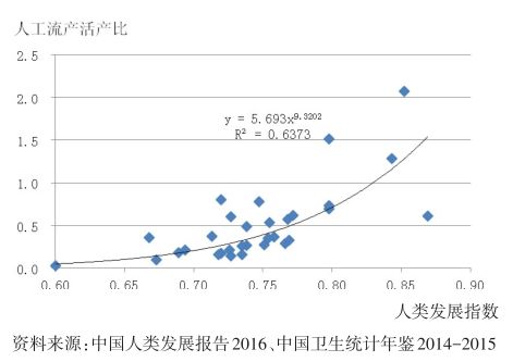 图5 中国各地区人类发展指数与人工流产活产比的关系