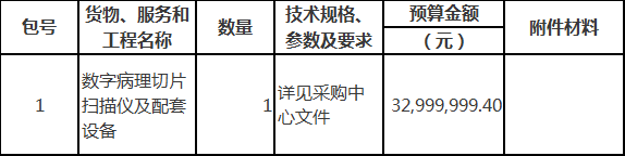 内蒙古政府采购中心受内蒙古自治区卫生和计划生育委员会本级委托,采用公开招标,采购数字病理切片扫描仪及配套设备。欢迎符合资格条件的供应商前来报名参加。