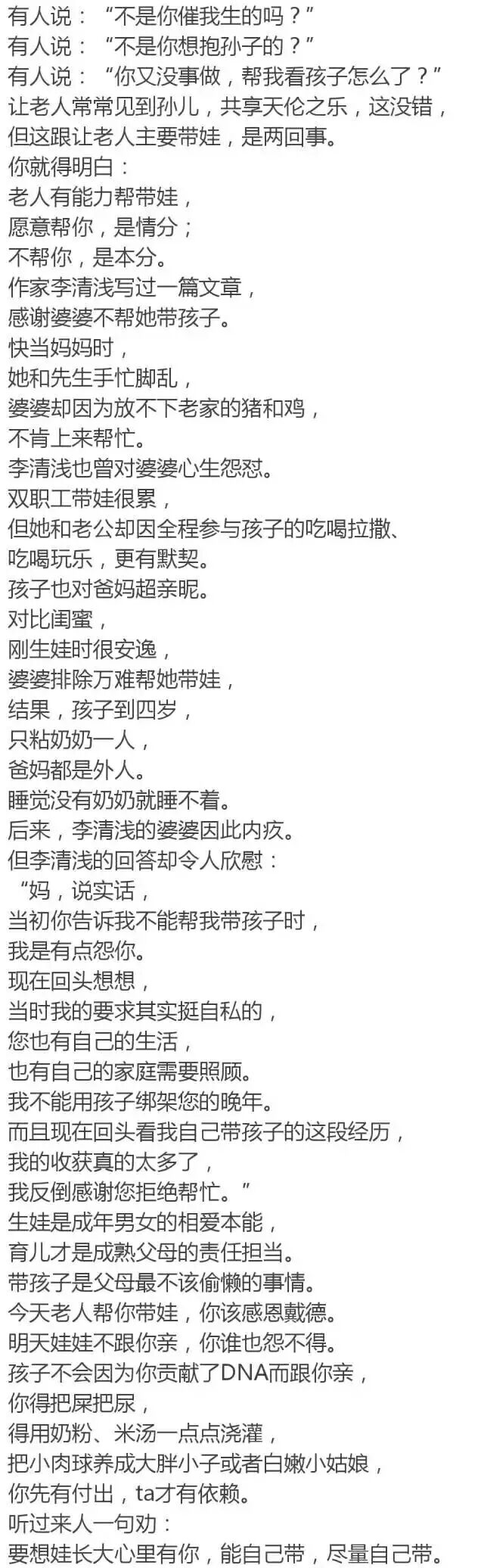 本来就是,自己的孩子自己不带,甩手给老人,那你生孩子干嘛!每一代人都有每一代人的苦恼,(tamen)忙一辈子了,应该给(tamen)享受晚年生活的机会,人活一世其实不止围着儿孙转,上半辈忙家庭忙赚钱,下半辈也要为自己活,才不枉走这一朝!