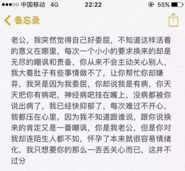 ?带孩子真的很累,但是老公不理解,造成了孕妇的自杀倾向?