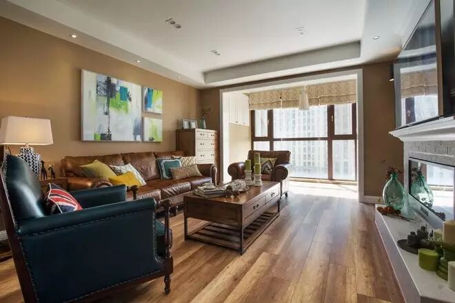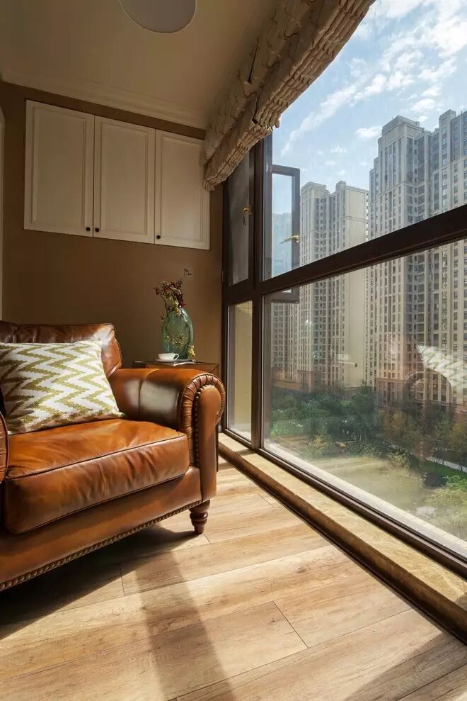 为了增加室内空间,地面一直延伸到阳台融为一体,打破了空间隔断。阳光充裕时把沙发移至阳台,透过落地窗感受阳光的亲吻,一本书一本茶,就这样度过一个温暖的下午。