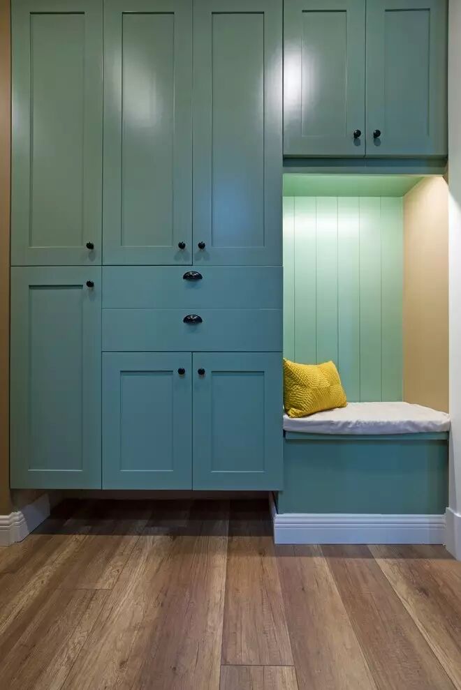 入户门厅的薄荷绿鞋柜,给人眼前一亮的感觉,空间的充分利用增加了储物空间,毕竟有两个孩子,放置东西的地方怎么能少。