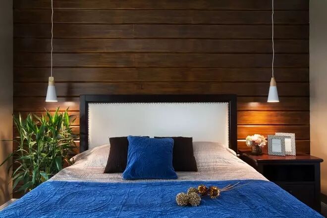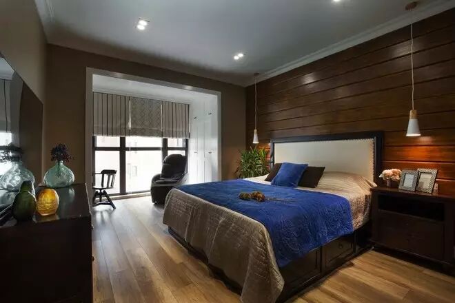 主卧室两边采用小吊灯代替台灯,节省空间,又能营造私密的环境。