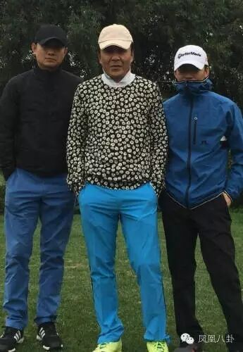 照片中,三人穿着休闲运动装,现身高尔夫球场。王宝强一首拿着高尔夫球杆,一手挥动着拳头,好像在庆祝打了不错的好球。