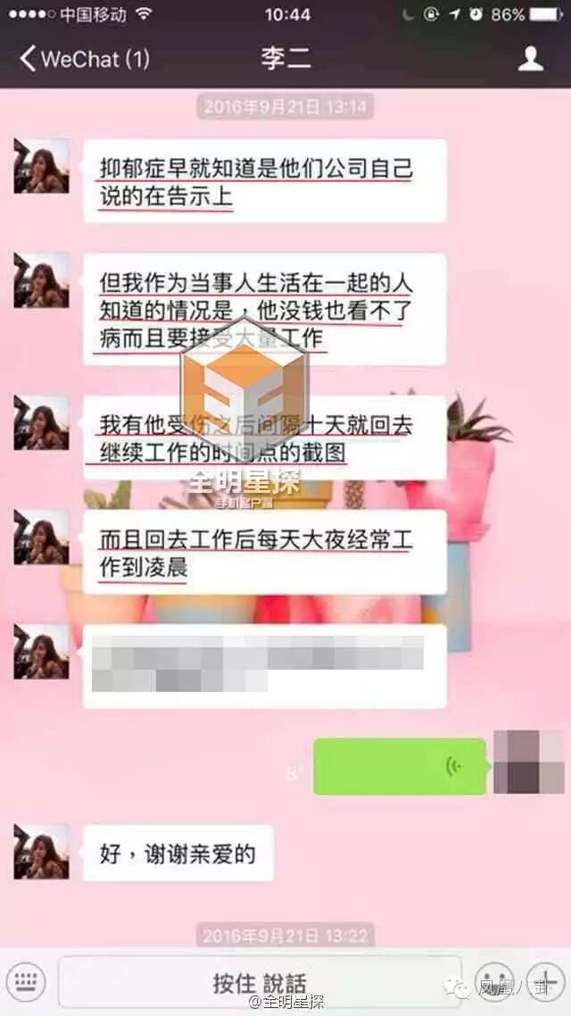 随后有网友在全明星探曝光了他和李二的聊天记录,据爆料人所说李二称乔任梁在经纪公司强制安排工作的情况下,抑郁症加剧,并指责经纪公司没有及时给kimi工资,乔任梁生前账号不足10万。