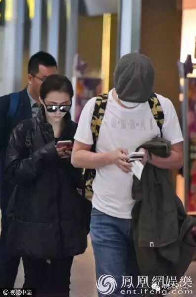 10月22日,张靓颖、冯柯身穿黑白情侣装同框现身北京机场。
