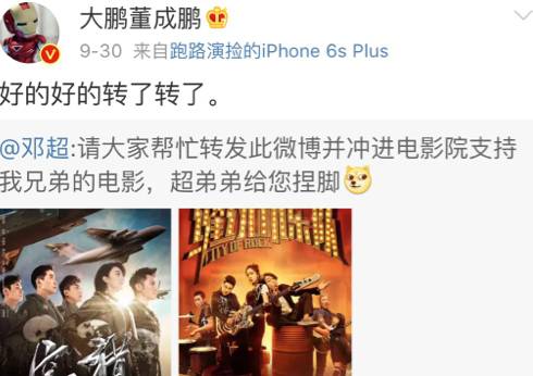 大鹏为了宣传自己的电影,跑明星微博里评论。
