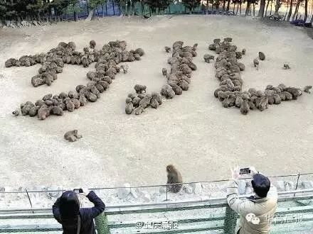 为迎接即将到来的猴年,近日,日本兵库县淡路岛一家动物园工作人员用猴子爱吃的食物摆出了日语中“猴”的字样,此举引得两百多只猴子纷纷围拢过来,没多久就拼出一个巨大的“猴”字。(中国新闻网)