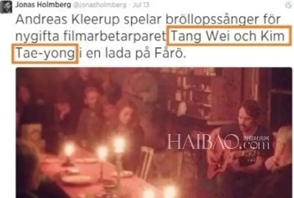 这就是汤唯婚礼的现场,被瑞典歌手Jonas Holmberg在Twitter上曝光