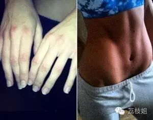 打boxing训练完毕后,糖糖Po出一张图,双手淤青斑斑,但是右图效果也是明显的,她认为这一切很值得。