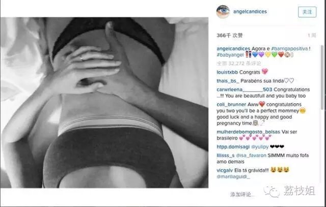 在2016年3月19日,糖糖在ins上公布了自己怀孕的照片,与老公的手一起温柔地轻抚在肚子上,配文为#babyangel#,这个振奋人心的消息,让粉丝们看到了将爱情进行到底的正确打开方式。