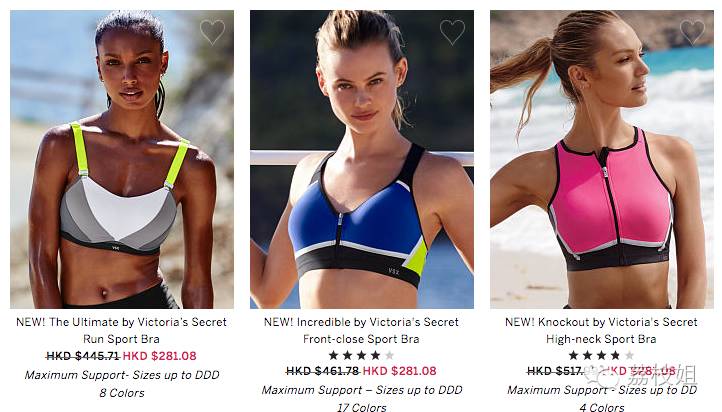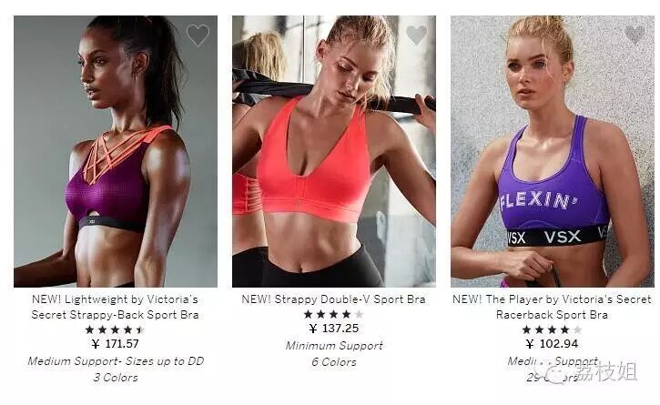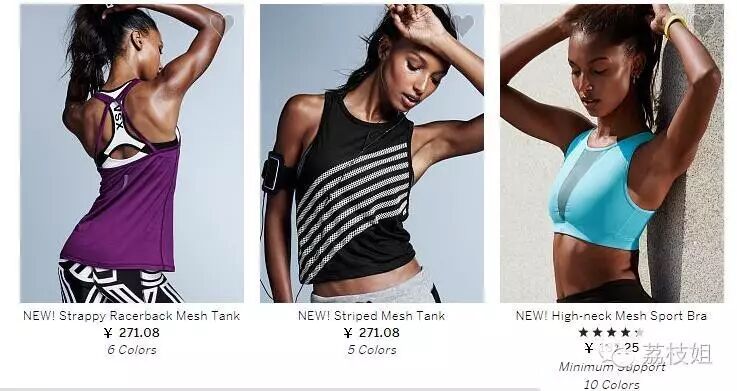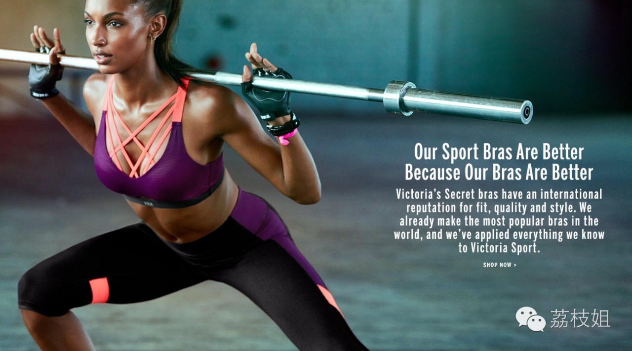 做内衣起家的维多利亚秘密,在运动系列当中主推的也是她们家的运动内衣。