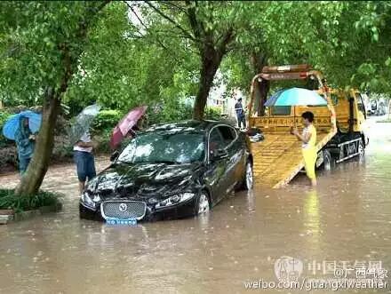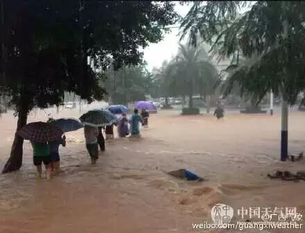 防城港东兴接连遭遇特大暴雨,两天总降雨高达638.5毫米,这个数据接近东兴市上半年(1~6月)的总降水量(747.4毫米),降雨强度之大令人震惊 。 全城“看海”,房屋进水,不少车辆水中熄火。(via.广西气象)