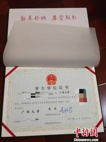 近日,广西大学部分毕业生领到了“早产”3个多月的“乌龙学位证”。广西大学教务处一位沈姓副处长介绍,这是由于一台打印机错将学位证的日期打印为3月(应为6月)造成的,校方已在6月30日发毕业证前发现此事并追收,强调此事只涉及100多名学生。(via.中新网)