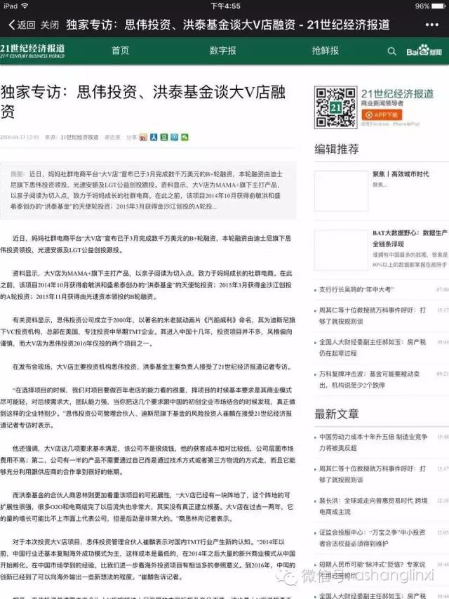 国内四大顶尖财经媒体之一《经济观察报》报道大v店