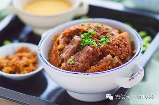 1.准备的材料:猪大排500克、小米150克、豆瓣酱、姜末、黄酒