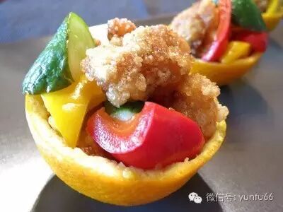 步骤6:将炒好的牛肉蔬菜丁装入彩椒碗中,趁热食用即可。
