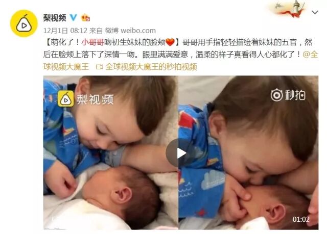 「小哥哥吻初生小妹妹的脸颊」的场景