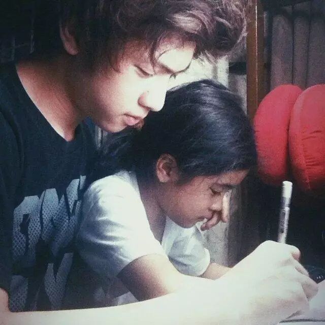 遇到不会做的题时,哥哥会耐心的在身旁辅导。