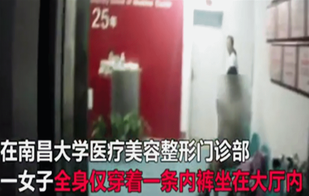 近日,在南昌大学医疗美容整形门诊部大厅,一名女子全身仅穿一条内裤坐在椅子上,现场的人都难以直视,十分尴尬,经民警劝说,女子终于穿上内衣。据了解,该女子今年38岁,生完孩子不久后,在这家医院做了抽脂丰胸丰脸手术,花费2万多元,可半年多的恢复期过去了,一点效果也没有。因无法接受,她才做出过激的举动。(来源:看看新闻)