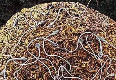 扫描电镜下,放射冠表面的精子