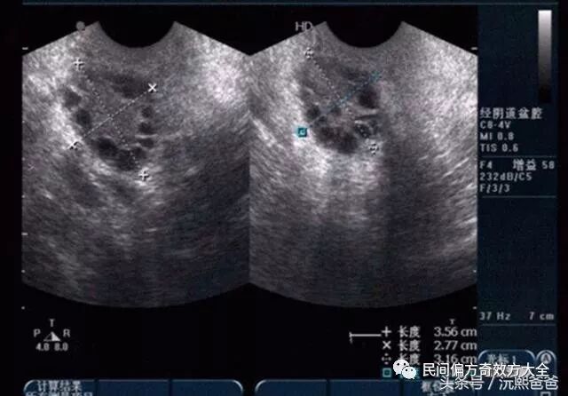 彩超检查直接确诊多囊卵巢。