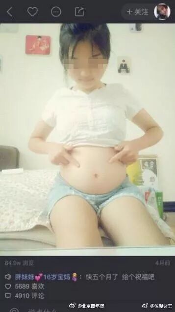 这个自称年仅14岁、挺着大肚子的女孩在快手APP火了。