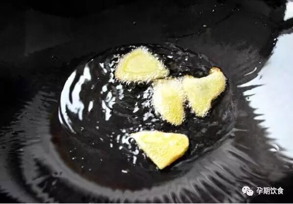 2.炒菜锅中放两勺油,等到油热时放入姜片