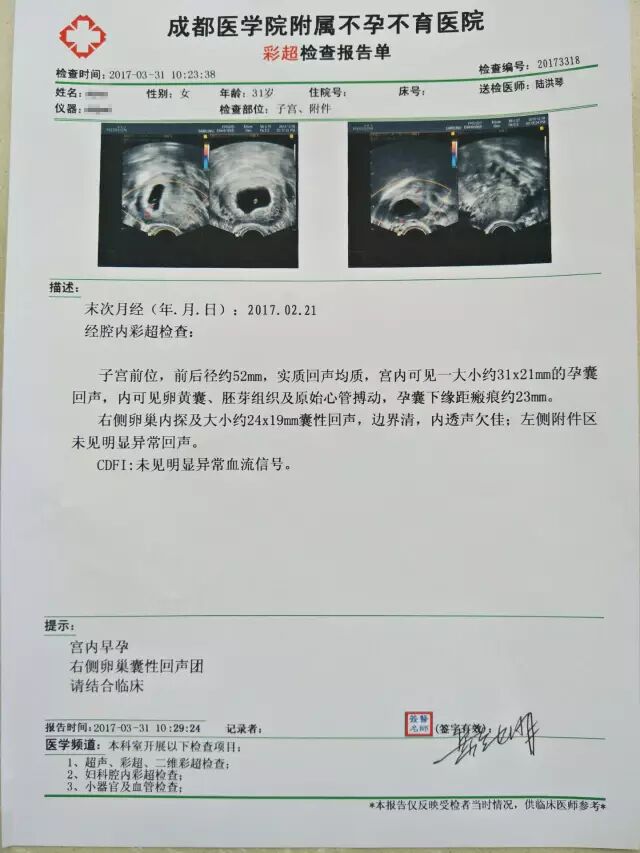 两个月不到便成功受孕,成都医学院附属不孕不育医院恭喜沈女士如愿以偿!