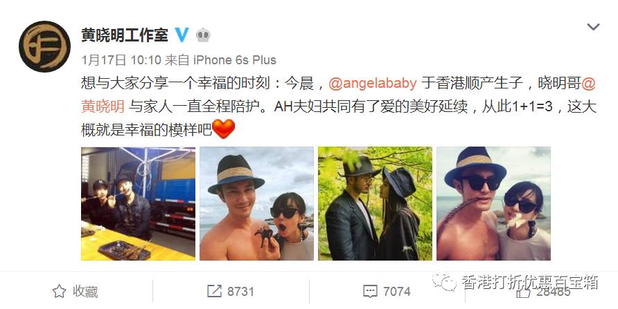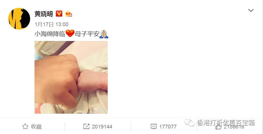 兴奋的黄教主在微博上第一时间更新状态:“小海绵降临,母子平安”。