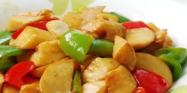 杏鲍菇洗净切滚刀块;彩椒切小块; 蒜切片。