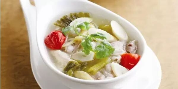 锅中放油烧热,将葱、姜末爆香后放入泡椒碎翻炒均匀,然后再锅中加入适量牛肉高汤,大火煮开。放入袋装鲜笋尖片和酸菜,煮2分钟后,放入肥牛片,加入金标生抽、盐调味。