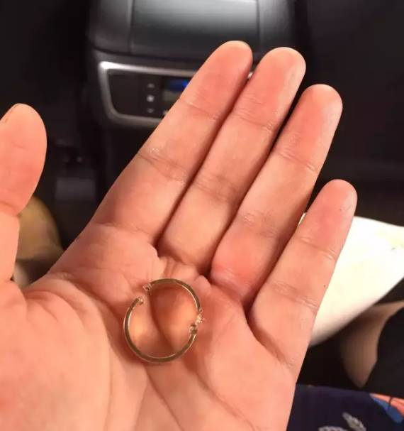 原来,王女士手上戴了一枚钻戒,是老公专门为她定制的,结婚七八年,一天都没有取下来过,怀二胎浮肿得很,戒指卡在手上。
