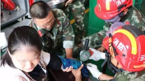 “哎呀,好疼”、“受不了啦,别拔了”、“就这样进去吧,坏死了我不让你们负责”……无论尝试什么办法李女士都因为忍受不了疼痛而不得已放弃。无奈医生找来了消防员,用锯子将李女士手指上的戒指锯成了两段才取下来。