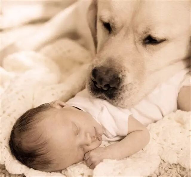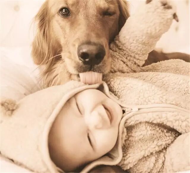 狗狗守候在软萌baby身边的示例不少,它们大部分都会在宝宝遇到危险的时候起到保护的作用。