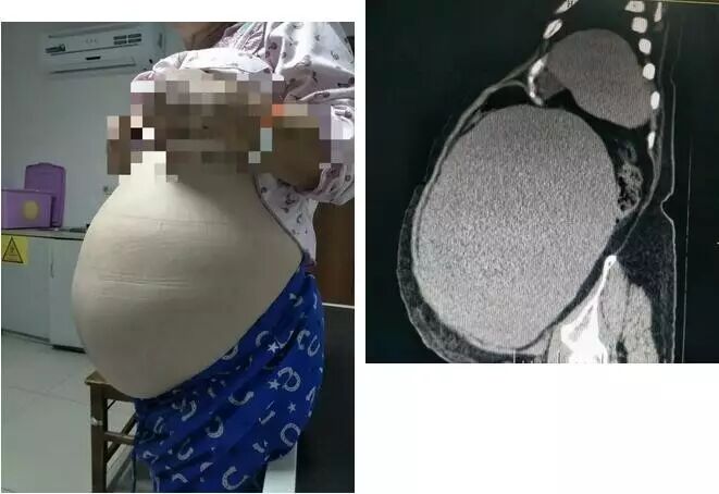 腹大如鼓,看上去就像怀了多胞胎足月即将分娩的孕妇,这让65岁的王女士十分困惑和尴尬。到医院一检查,原来腹部CT发现腹腔内有一巨大囊性肿块......