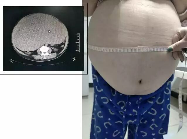 可谁知,王女士后来饭量变得越来越小,肚子却越来越大。没几个月的时间,王女士看起来已经像是怀孕临盆的肚子,但人却仍然是消瘦的,并出现腹胀,胸闷、尿频、双下肢水肿等情况。