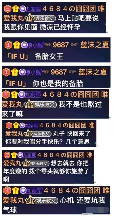 随后,丸子开播,粉丝疯狂带节奏,局面有点控制不住,丸子在国外网络又很卡,仅开了十分钟就黑脸下播了,气氛小凝重!