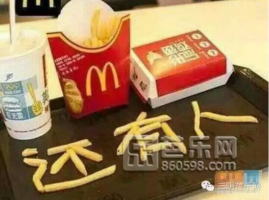 不怕,用薯条在餐盘上摆出大大的“还有人“