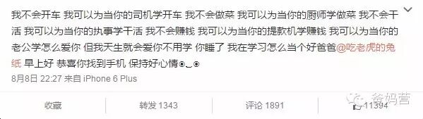 我不会开车,我可以为当你的司机学开车;我不会做菜,我可以为当你的厨师学做菜;我不会干活,我可以为当你的执事学干活;我不会赚钱,我可以为当你的提款机学赚钱;我可以为当你的老公学怎么爱你,但我天生就会爱你不用学。你睡了,我在学习怎么当个好爸爸@吃老虎的兔纸 早上好,恭喜你找到手机,保持好心情◉‿◉