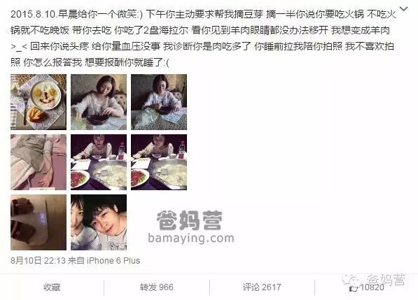打开微博以为我今天新发型太帅地球人全知道了,答应你记录你放心不用管别的。你还是吃不下肉,简单的给你做点蔬菜能吃下去,吃完就去抱马桶,瘦成狗,白喂了。晚上你写你的怀孕日记,我发现你有地方写错了,年写到月,你都没发现,还叫嚣跟我玩扑克要赢翻我。等我收拾完 你都睡了,其实今晚有你要看的剧。