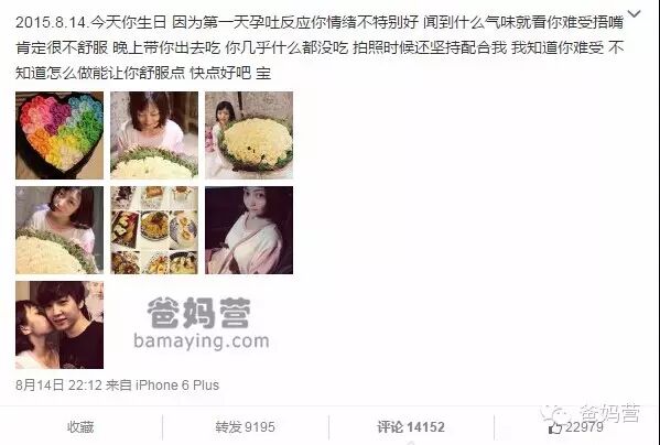 本来就已经是貌美如花的一对,当太太开始怀孕时,先生开始记录太太的怀孕日记。言语之间,实在是充满了疼爱和宠溺。
