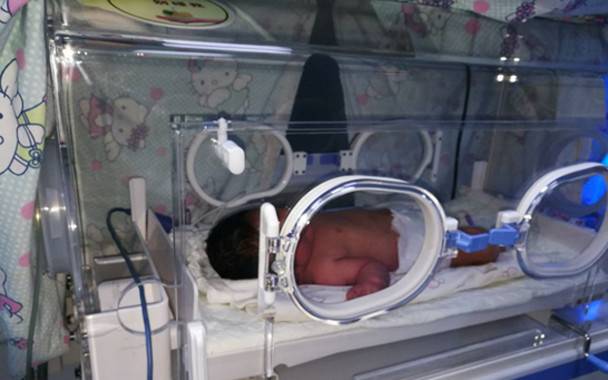 据医生检查,孩子7.8斤,男婴,但因为缺氧时间过长,孩子的脸部已经非常苍白带一些青色,不哭也不动。