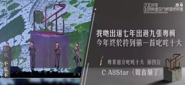 ”我们出道七年,出了九张专辑,今年终于拿到第一首叱咤十大。“