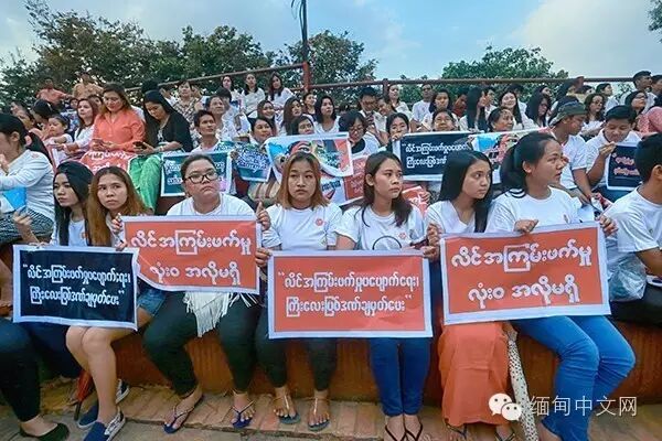 ▲仰光举行“消除性暴力,给予重罚”示威活动