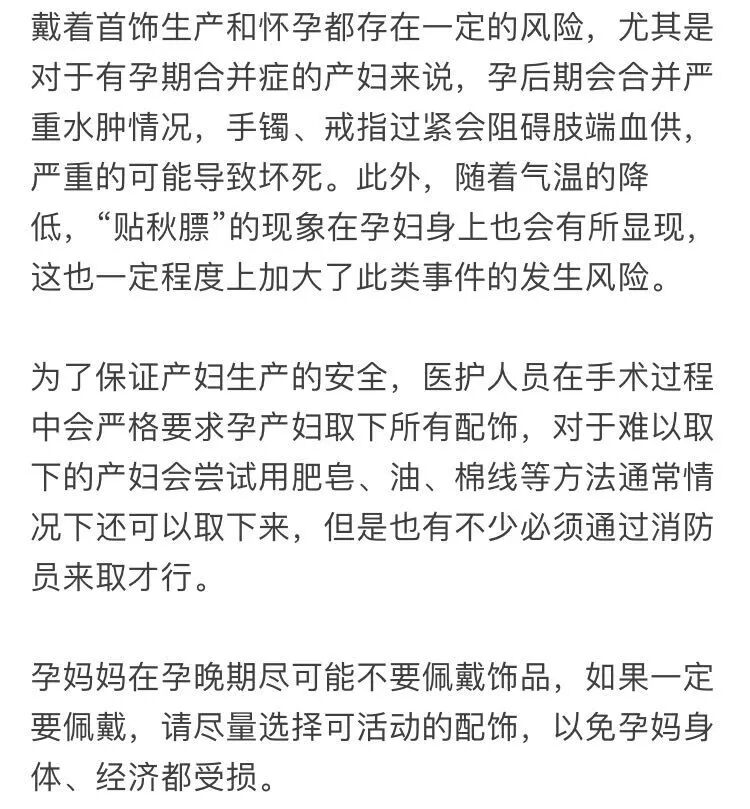 “重度子痫会导致全身浮肿,到时候戒指会阻碍血流供应导致肢端坏死,手术前非得取下来不可”,医生一边用肥皂水给王女士去戒指,一边认真的说到。在1个多小时里,医生尝试了肥皂水、油、棉线,但是均不能取下来。