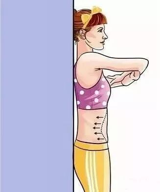 ③尽可能腹部向内收,主动靠近墙壁,想象用肚脐向墙壁方向靠近的感觉。