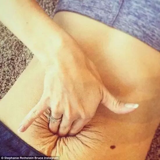 肚皮很松弛,上布满了妊娠纹的褶皱,看起来像是老人的皮肤。