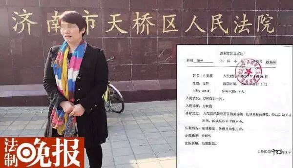 孔素英上午到济南市天桥区法院申请人身安全保护令,小图诊断证明显示孔素英受的是刀刺伤
