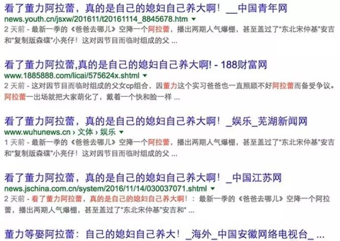 无疑,孩子是天真、童言无忌,但是湖南卫视“爸爸去哪儿”节目组的后期剪辑、字幕及花絮制作、全网宣传推广、网络通稿重点集中在渲染推广这对“临时父女”CP上,在视频网站的主打推广语也是“董力红唇索吻阿拉蕾”,是何用意?